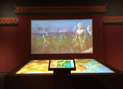 城垣变迁是为了更形象生动地展示金坛历史文化和人文底蕴而定制的一款集触摸互动、墙面投影、多屏联动为一体的多媒体创意展项,观众可在触摸屏上自主查看金坛发展历程、老城厢地图,可通过仿古电子沙盘与语音讲解了解金坛古城的岁月变迁。