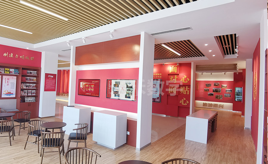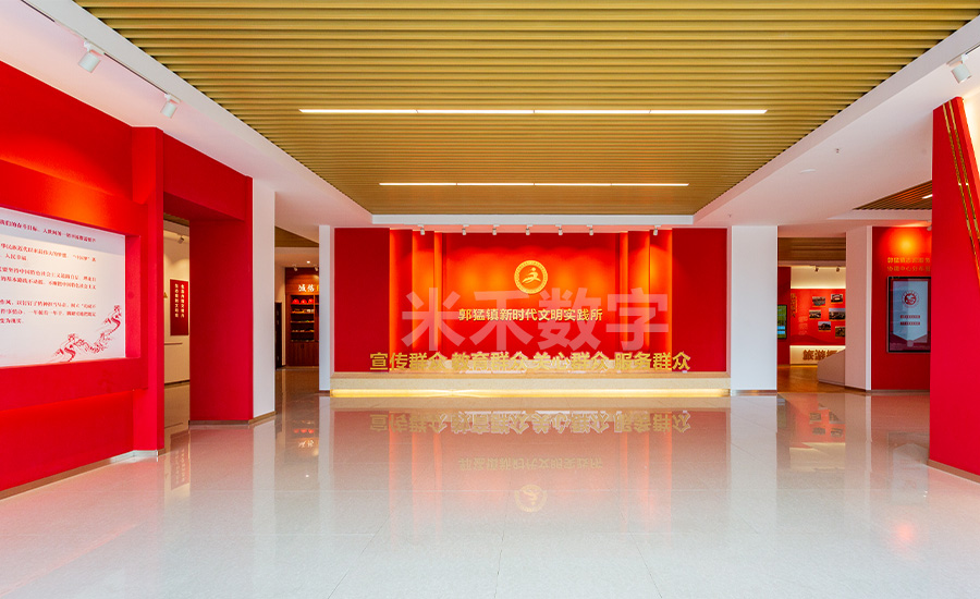 郭猛镇新时代文明实践所集党建、群团、乡村复兴少年宫、文化服务、志愿服务于一体,内设郭猛烈士生平展馆、图书馆、道德讲堂、廉政文化长廊、健身房、咖吧、志愿服务协调中心、“学习强国”加油站、等功能室和功能区域。我们通过图文展板和展厅多媒体互动展示,对站所制度、工作职责、组织架构、志愿服务以及五位一体乡村振兴等内容的合理布局和建设,展示了郭猛镇新时代文明实践所建设工作中的服务经验和实践成果,并通过展厅智能中控系统对实践所内所有操作进行远程集中控制。