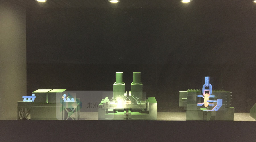 这套幻影成像展示系统是我们为亚星锚链企业展厅设计的一套多媒体创意展项,运用透明屏打造45度透明展示柜,在柜内设置多个锚链生产设备模型,通过全息影片在多媒体屏幕上的折射,为观众打造虚实结合的沉浸式锚链生产工艺流程,新颖生动的展现形式,获得客户和用户的一致好评。
