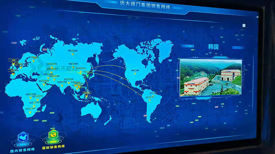 这套为远大阀门集团企业展厅定制的销售网络多媒体触摸查询系统,通过在中国地图和世界地图上动态展示远大阀门在各地的销售点,观众点击各销售点,可查看相关销售点的图片信息。这款互动多媒体触摸查询展示系统不仅展现形式新颖,还支持远程编辑,客户可根据需求自主编辑展示内容。
