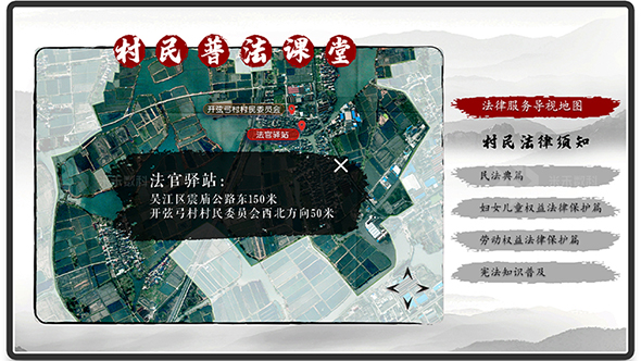 苏州市吴江区七都镇开弦弓村,以“江村”之名闻名于世,该村是费孝通先生《江村经济》一书的调查样板,也是中外学者了解和研究中国农村的一个窗口。近年来开弦弓村积极响应加大全民普法力度,深化依法治国实践的号召,除了在开弦弓村村民委员会和法官驿站积极开展普法宣教工作,还在费孝通江村纪念馆乡村治理体验馆通过由米禾数字全方位定制的江村之治多媒体展示及村民普法课堂互动查询系统进行普法宣教。