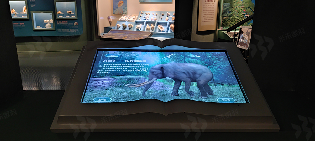 为常州少儿自然博物馆定制的以“奇趣动植物”为主题的电子翻书触摸互动系统,通过图文、视频等形式,对巨犀、剑齿象、巨齿鲨、菊石、美洲豹等动植物信息进行科普教育,并将该触摸查询软件安装在以书本为模型的触摸一体机上,吸引观众进行互动学习。