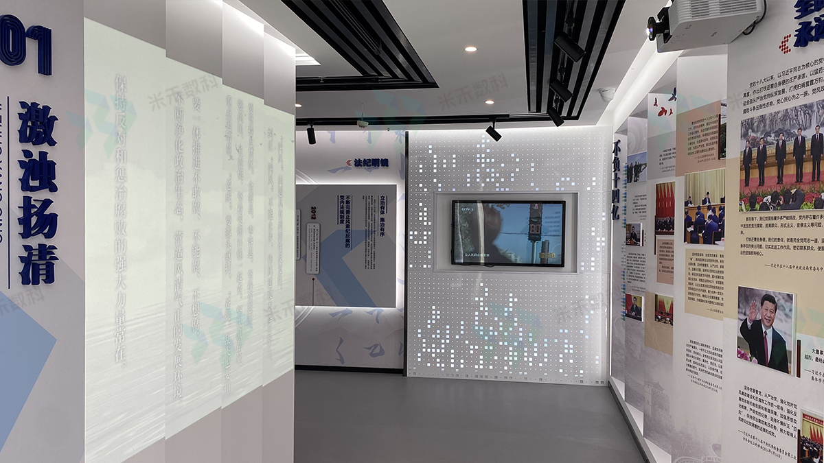西宁房地产集团廉政警示教育中心多媒体展厅项目由米禾数字一站式承建,通过先进的数字多媒体技术,结合房地产行业特征进行反腐宣传,打造沉浸式、互动式廉政警示教育基地,教育提醒房产从业者坚守正道、克己奉公,修身洁行、远离腐败。