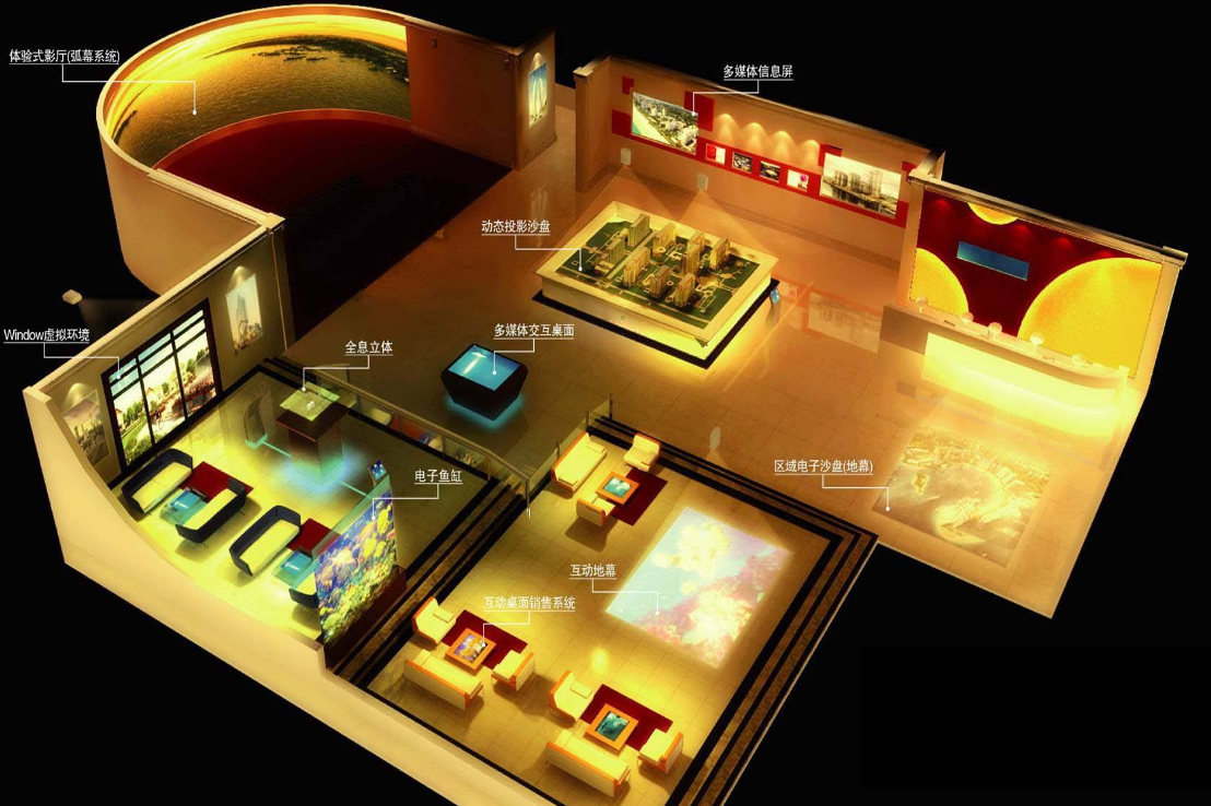 多媒体展厅又称为多媒体数字展厅。和虚拟展厅与数字展厅不同的是,同属于非实体展厅的多媒体展厅主要是与多媒体和数字化技术作为展示技术,以各种新颖的技术吸引参观者,实现人机交互方式的展厅形式。目前随着网络技术的不断创新与快速发展,多媒体展厅经常被用到诸如科技馆,博物馆等一系列的各大主题展馆之中。在集中常见的展示手段中,大屏幕投影和触摸查询是被广泛应用的。