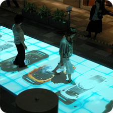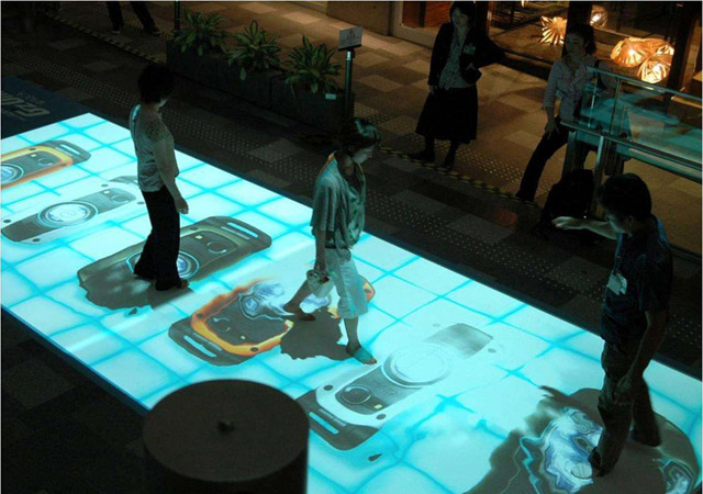 地面互动通常是指基于地面的交互式投影系统结合了最新的计算机处理系统和交互式投影技术,以创建新颖的交互式体验。悬挂在顶部的投影设备将图像效果投射到地面,只要观看者进入投影图像区域,多媒体系统就会感知和识别,从而捕捉和记录观看者的肢体运动和相应的计算机分析;肢体运动结合实时图像交互系统,你可以直接用手或脚与投影屏幕上的虚拟场景进行交互。当你移动手臂或脚时,各种幻想的交互会改变,把观众带入一个现实与虚构结合的梦幻世界。简单地说,当脚进入投影屏幕时,会带来各种奇妙的效果,令人印象深刻,挥之不去。