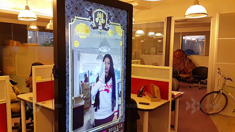 虚拟拍照系统的实现技术有很多种,可通过Kinect进行体感拍照和交互,在显示屏上进行展示,也可直接直接在触摸屏上进行拍照互动,不管选择哪种实现方式,对硬件要求都很简单,只需定制个性化拍照软件即可。