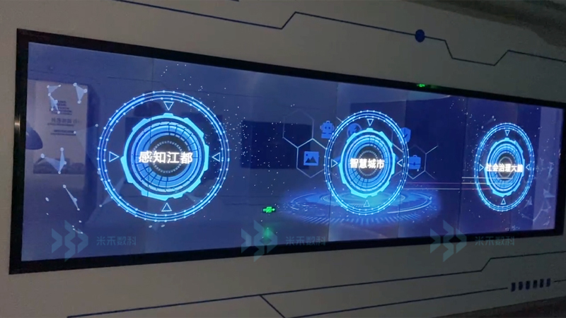 近日,米禾数字为扬州市江都区创新社会治理展示厅多媒体互动系统进行售后升级,优化了长安江都互动滑轨屏和社会治理大数据系统,更新了展厅多媒体展示内容。扬州市江都区创新社会治理展示厅多媒体互动展示由米禾数字承建,我们根据展示厅设计需求,为其定制了以魅力江都、智惠江都、长安江都、领导关怀、友好往来、未来之门、江都大数据等主题展项,通过一体机、触摸屏、拼接屏、投影机等多媒体应用设备联合打造科技感十足的现代化展厅。