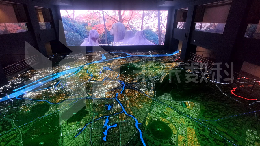 数字沙盘作为一个城市的微缩形象出现,在多媒体互动投影、LED屏、拼接屏等展示技术的支持下,可实现对城市全景的直观展示。让观众在光影变幻中,感受城市的变迁与发展,沉浸式展览效果能将观众更快的带入展览中,烘托城市规划馆设计的整体氛围。