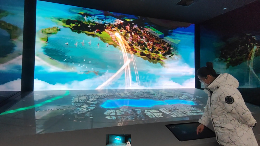 多媒体科技的持续发展,也为技术与技术之间架起了交互的桥梁,数字沙盘的应用可以与多通道投影投影、大屏幕展示、触摸查询一体机等技术联动展示,观众通过触摸查询的方式,选择相应的区域板块进行深入了解,与此同时多媒体展示效果也会随之发生改变。