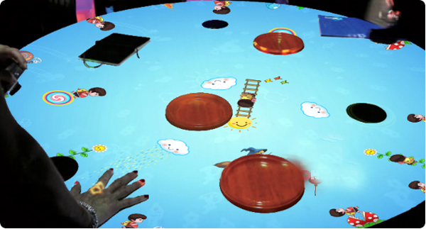 电容屏物体识别桌是将电容屏幕做为桌面,电容屏可以识别带电的东西,产品背面会加安全电,且人手指也是带静电的,所以触摸会有反应,互动性会高些。