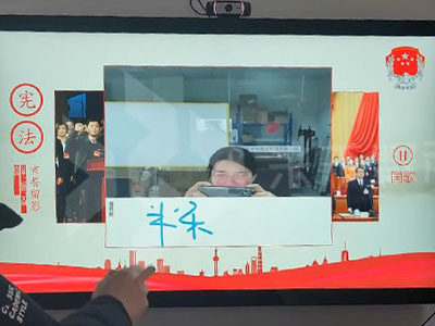 该宣誓留影系统设置了宪法宣誓和青少年守法宣誓2套宣誓界面,通过数字多媒体演示规范用户宣誓仪式、誓词和流程,并运用智能拍照功能抓取用户宣誓照片,用户可在数字照片上签名留影,扫码保存、自助打印和多屏联动展示。