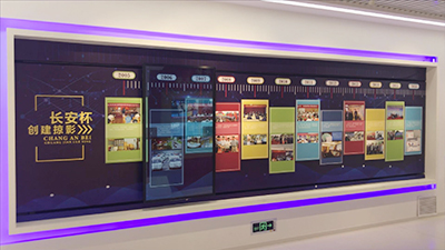 在党史馆、企业展厅等展示空间,发展历程一般会使用移动滑轨屏来展示,以时间为节点,定点播放各时间段的发展和成就。客户将...